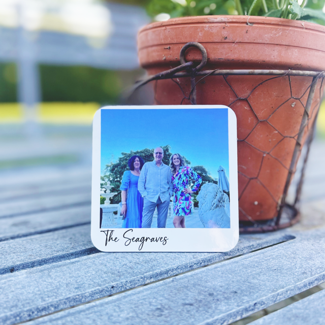Display your favourite photo on this Personalised Photo Coaster. Simply upload your favourite memory and this coaster offers a unique way to show it off. The beautiful design and unique feature of personalisation makes this an ideal choice for home décor. You are also able to add in a custom text line.